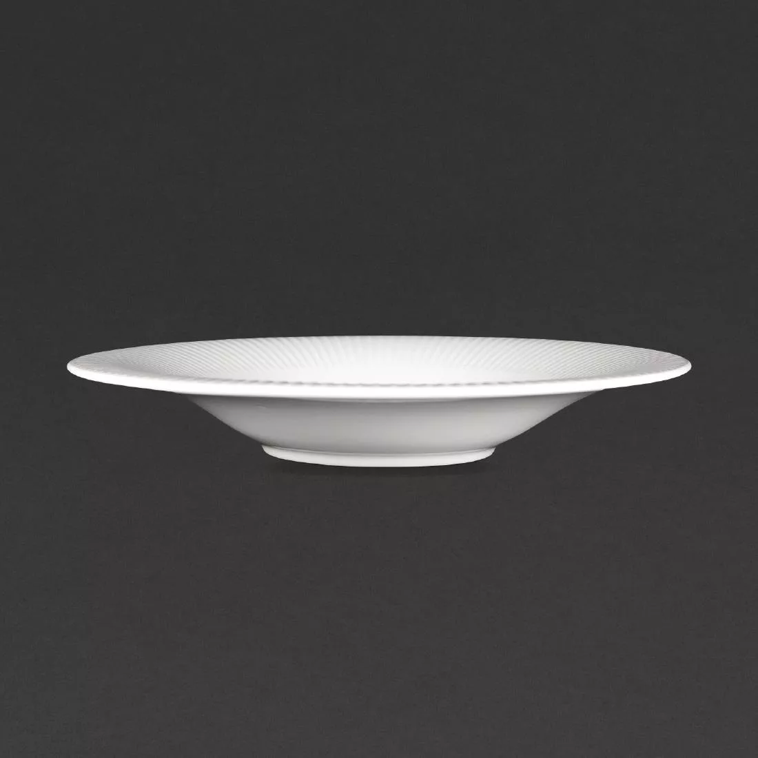 These elegantly rimmed 285mm bowls from the Steelite Willow range are finished in brilliant white gloss to give your guests a delicately detailed dining experience. The raised web design on the rim perfectly complements the non-textured interior of these durable and hardwearing 285mm bowls and makes them ideal for any restaurant or hotel wanting to offer refined whiteware which is hard and robust enough to last through extensive commercial usage.