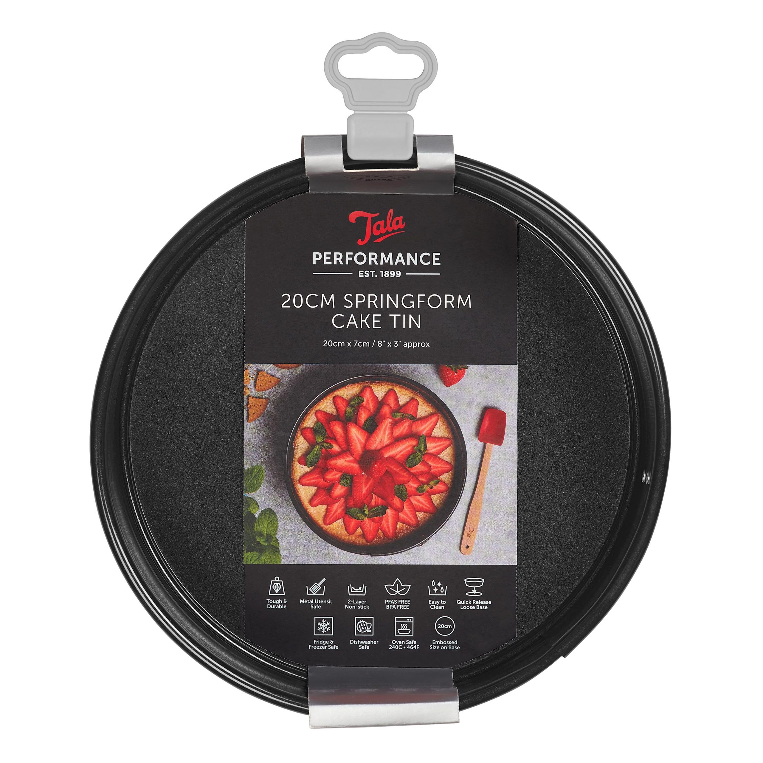 Designed with a secure spring latch and a detachable base, this cake tin makes removing your baked goods simple and mess-free, helping your cakes keep their perfect shape. With a 20 cm diameter, it’s well suited for small to medium cakes, whether you’re baking for everyday treats or special celebrations. Made from sturdy, long-lasting materials, the Tala Performance Springform Cake Tin promotes even heat circulation for reliable baking results. The non-stick surface allows for effortless release and easy cleaning, making baking more convenient and enjoyable.
