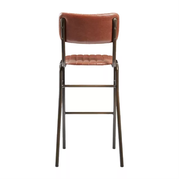 Give your bar, restaurant or coffee shop a chic, industrial look with this Tavo stacking bar stool. Standing at a height of 1100mm, the seat and back pad of the stool are wrapped in premium vintage faux leather, featuring a distinctive ribbed pattern that seamlessly blends style and comfort. This contrasts beautifully with the extremely strong tubular clear lacquered metal frame. For easy storage, the bar stool can be stacked six to eight chairs high (user’s discretion) depending on the height and stability in the chosen storage area.