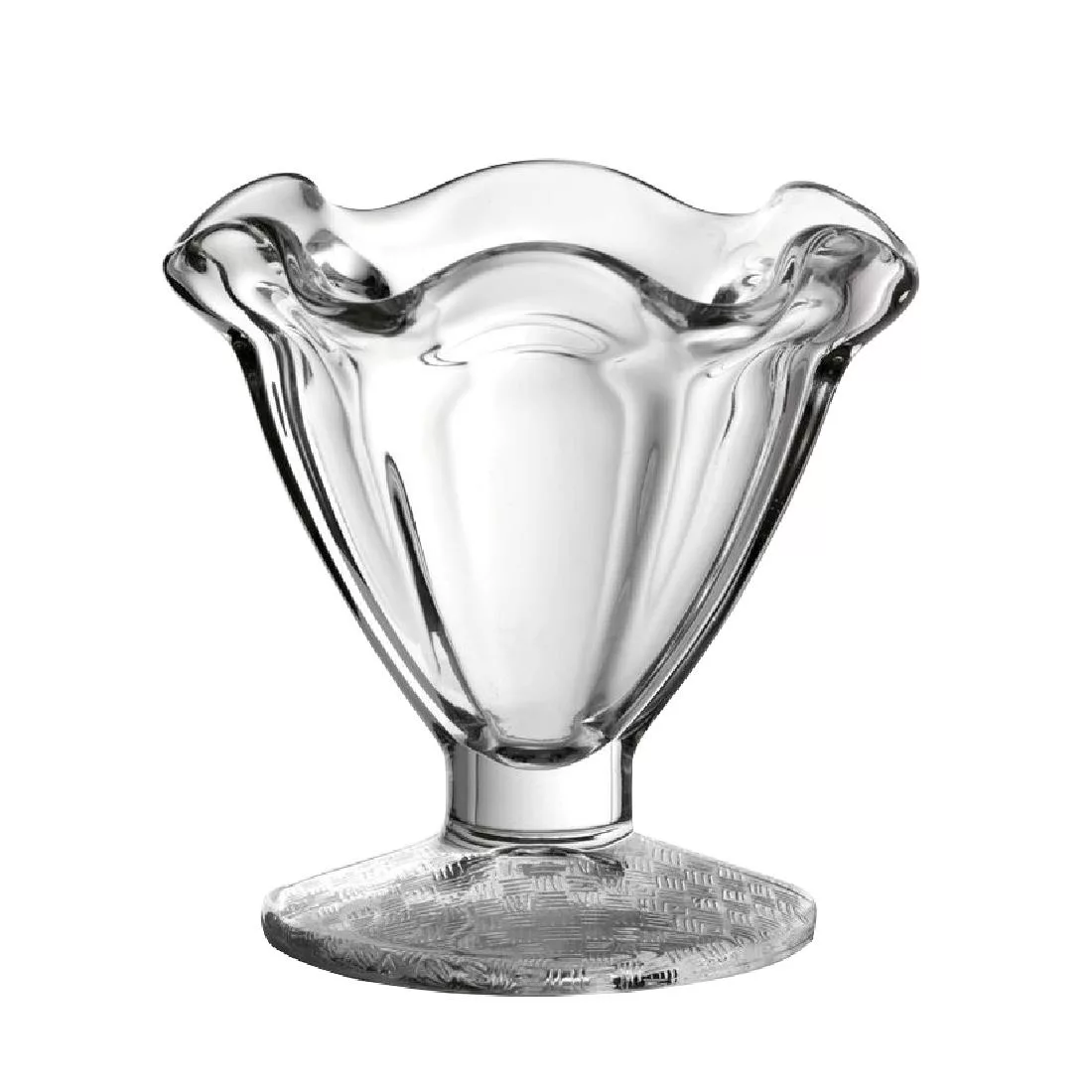Compact but perfectly formed, these Utopia Petit coupe dishes showcase small desserts perfectly. Manufactured from machine-made glass, the coupe dishes feature a wavy rim and embossed design detail to the foot.