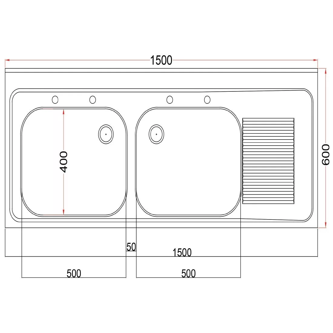 Vogue Fully Assembled Stainless Steel Sink Right Hand Drainer 1500mm