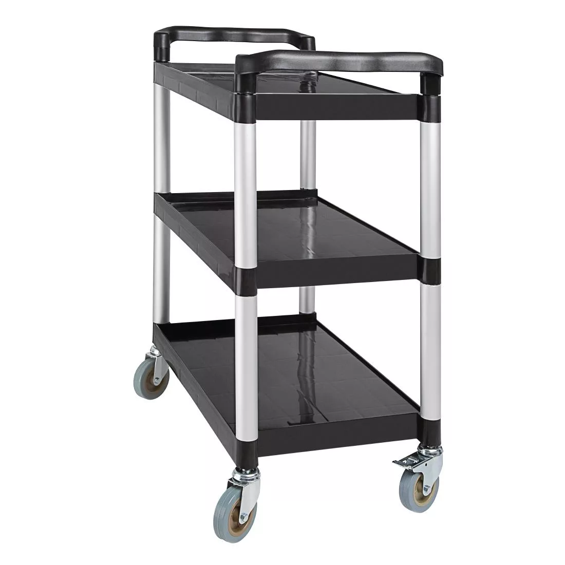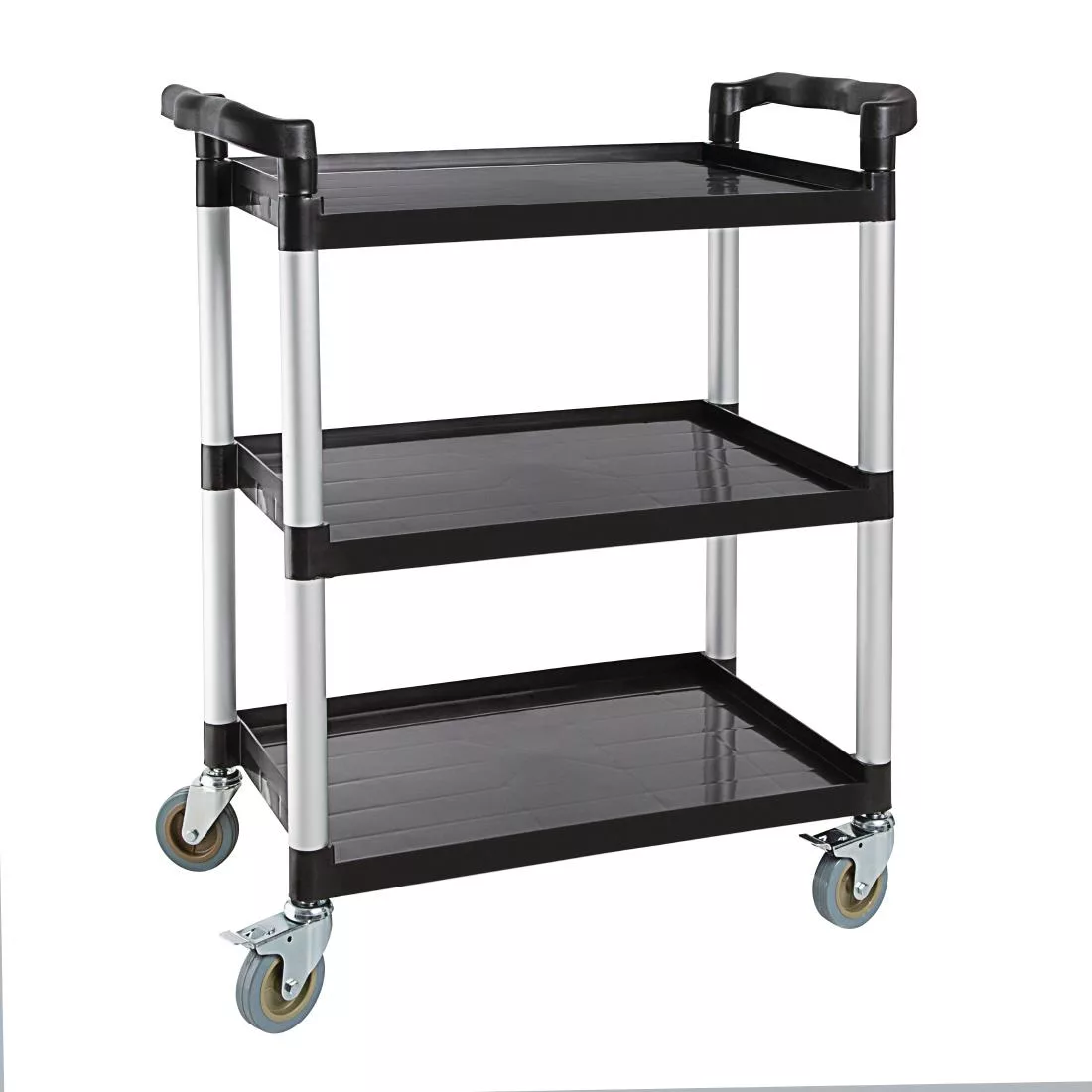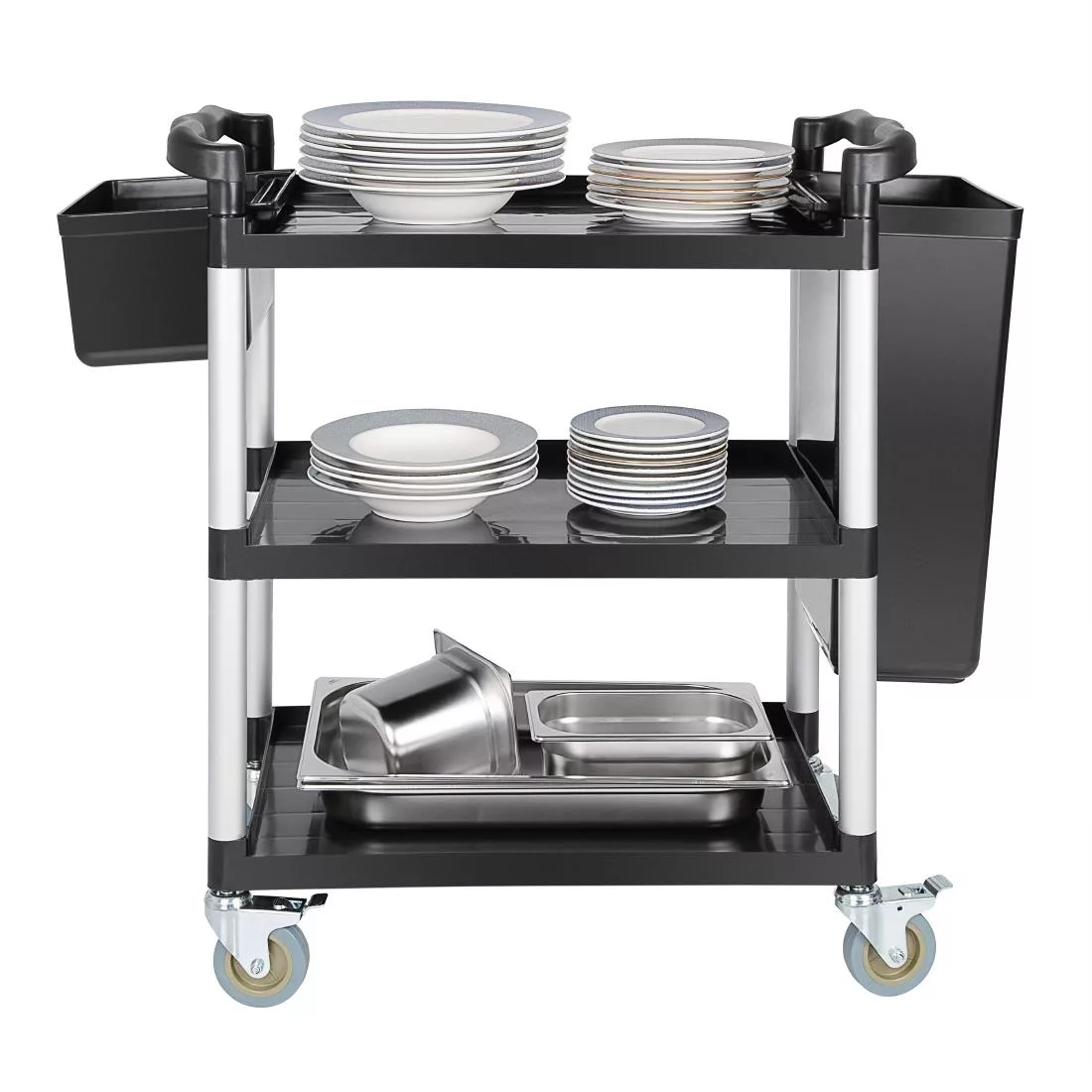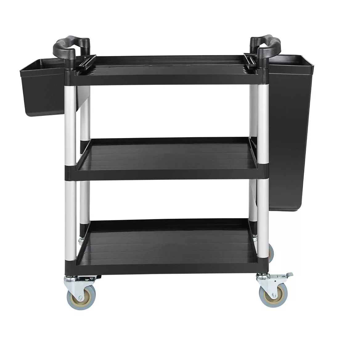 Sturdy framed, tough polypropylene utility trolleys that have the durability for many applications throughout hotels, restaurants and other establishments. Clip on refuse and cutlery bins available separately.