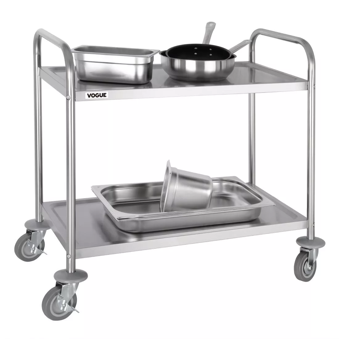 Vogue Stainless Steel 2 Tier Clearing Trolley Medium