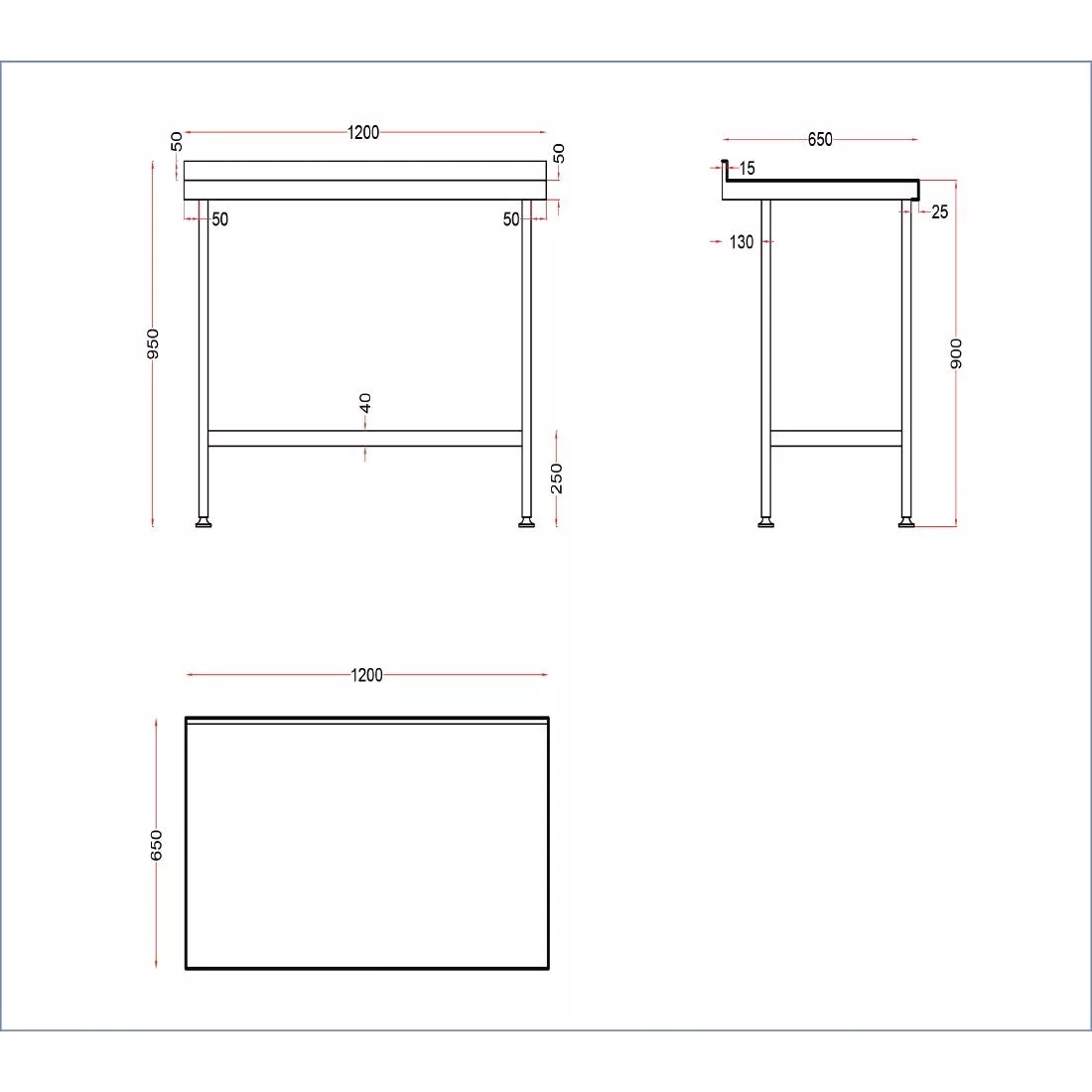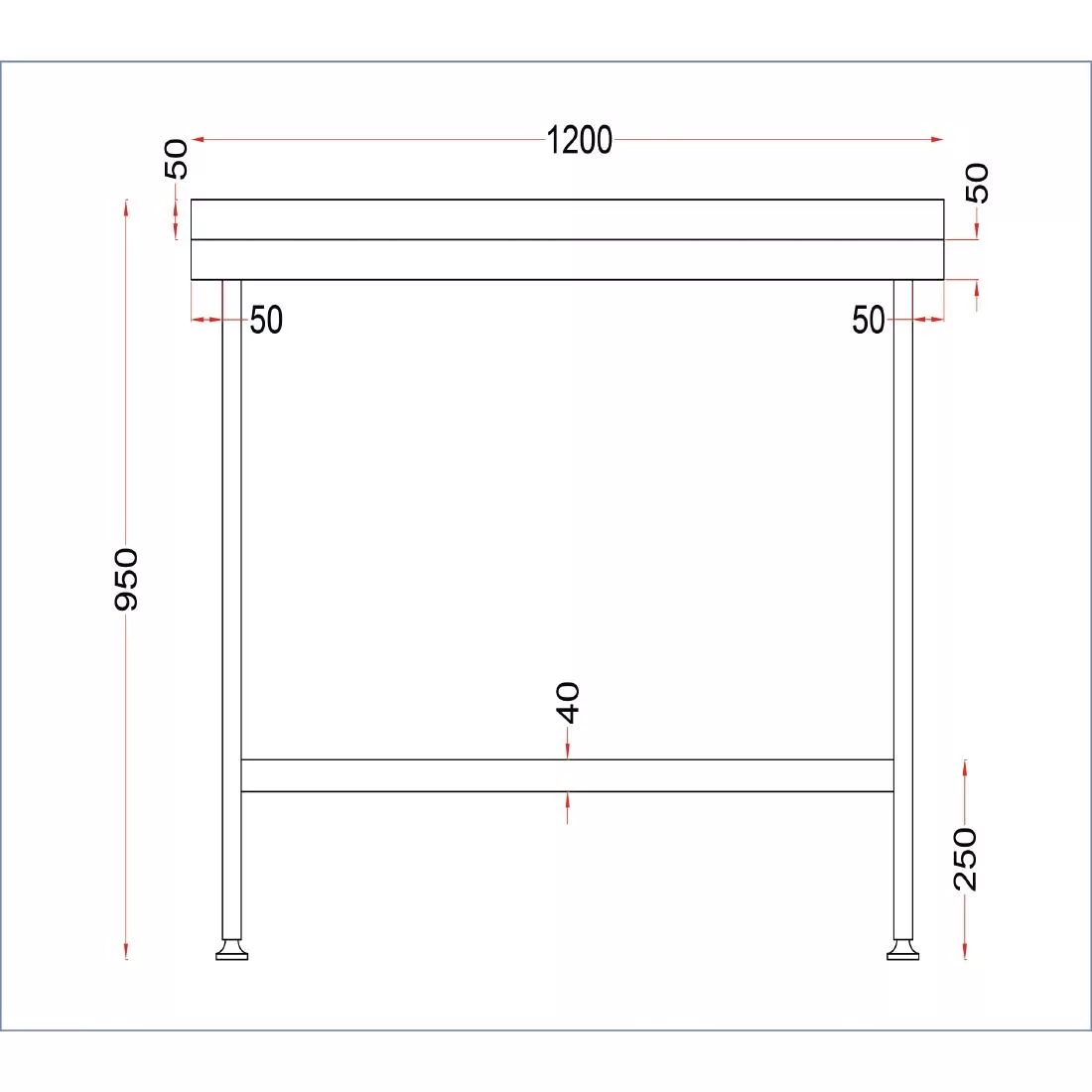 Vogue Stainless Steel Wall Table with Upstand 1200mm
