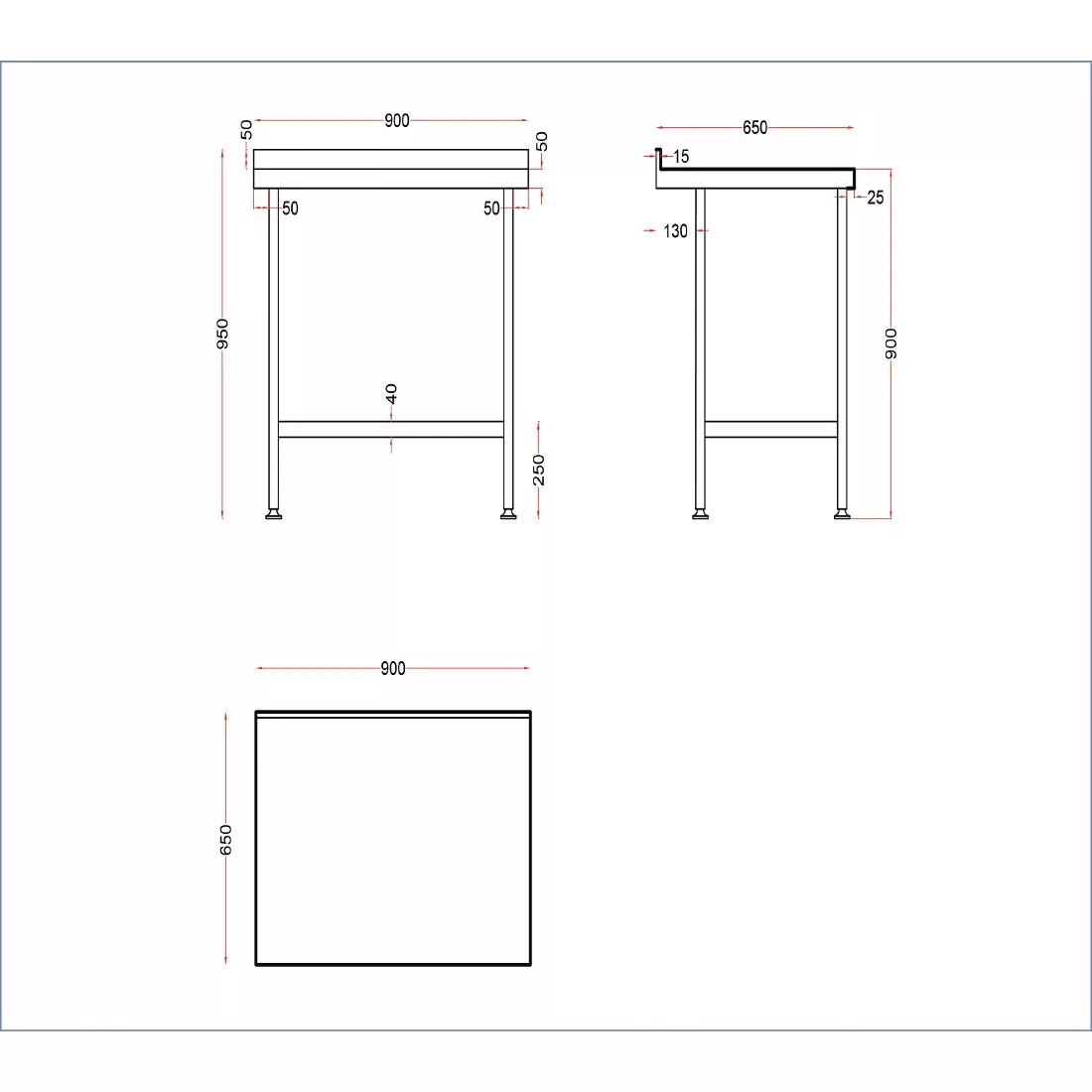 Vogue Stainless Steel Wall Table with Upstand 900mm